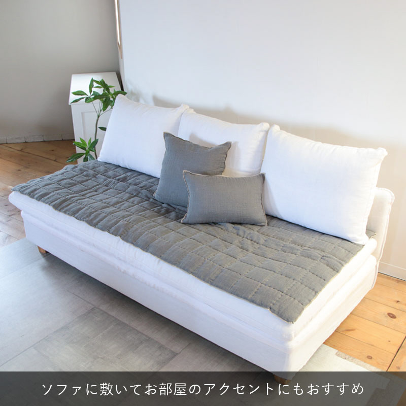 表面にリネン、裏面にコットンを使ったリバーシブルタイプのマルチカバー