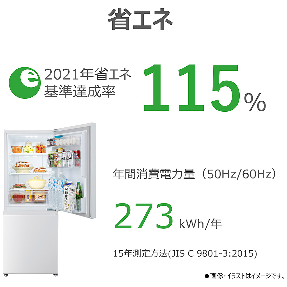 省エネ性も大幅向上(年間消費電力量273kWh/年、2021年省エネ基準達成率115%)