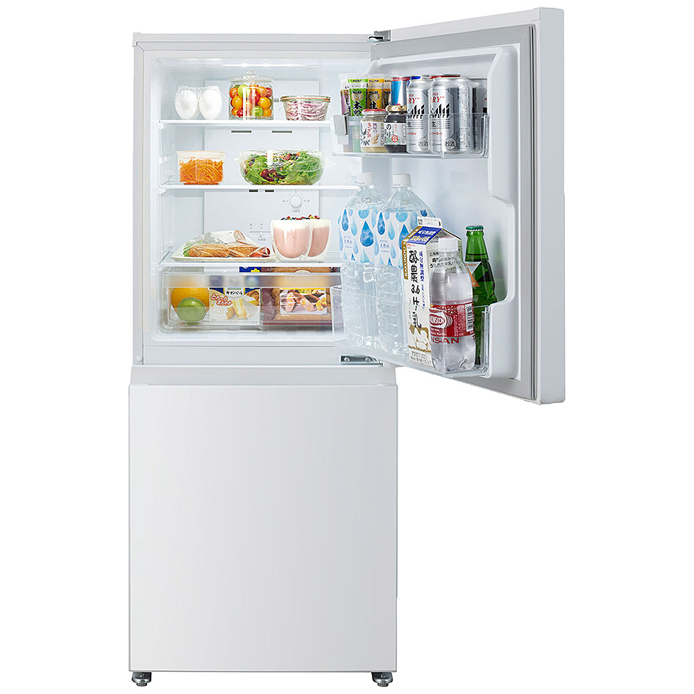 使いやすさにこだわり、シングルライフにぴったりな2ドアタイプ。2Lのペットボトルが3本も入るほか、冷蔵室のガラス棚も3段タイプ。コンパクトなのに使いやすい。