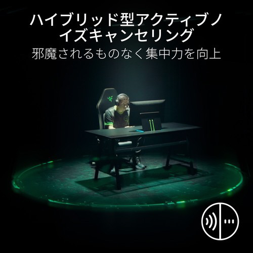 PlayStation 用 e スポーツゲーミングヘッドセットに搭載された高度なハイブリッド型 ANC と、完璧な密閉を形成する回転式イヤーカップとハイブリッドメモリーフォーム イヤークッションによる優れた遮音性で、邪魔されるものなく集中できます。Razer Synapse または Razer Audio アプリで調整可能な 4 段階のノイズキャンセリングレベルで、エクスペリエンスをカスタマイズできます。