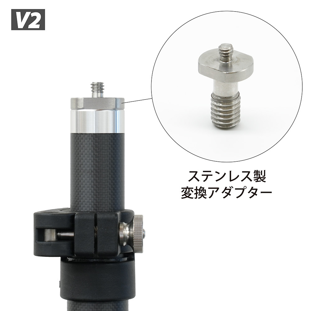 ロッド先端の1/4-20uncネジ部分を、従来のアルミ製から高耐久ステンレス製へ。摩耗に強く、カメラやアクセサリーの取り付け・取り外しもよりスムーズになりました。