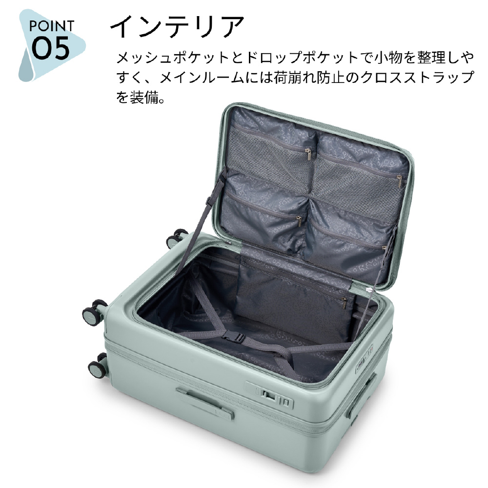 を配置。衣類や小物をすっきり整理でき、パッキングのしやすさにも配慮しています。