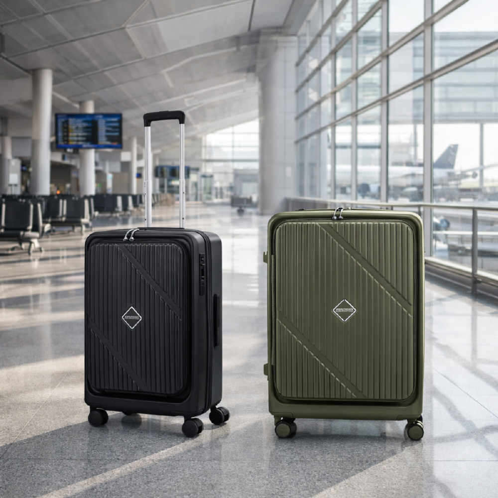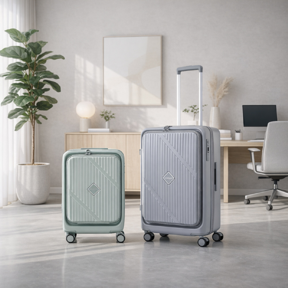 左右に大きく開かず、ブックのように片側ずつ開閉できるため、ホテルの客室や限られたスペースでも荷物の出し入れがスムーズです。