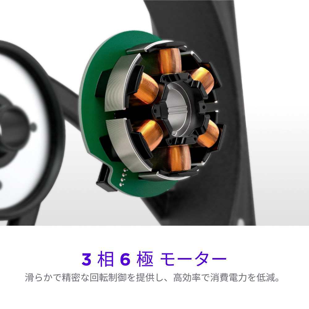 磁気浮上スタビライザーと流体動圧軸受(FDB)を組み合わせた最新のベアリングシステムを搭載。