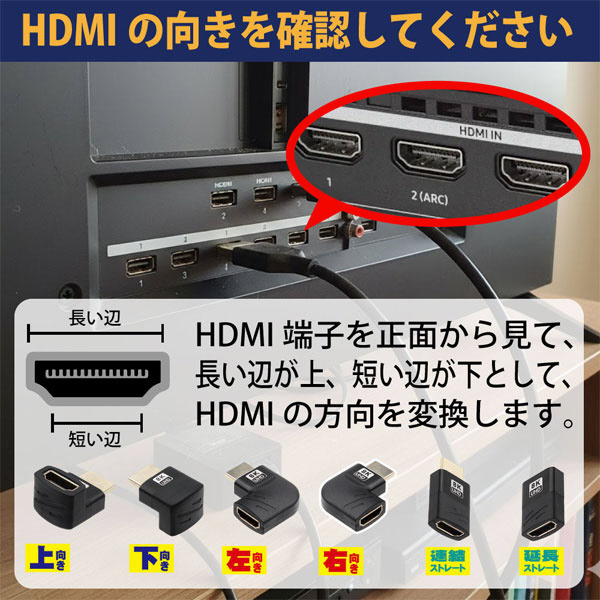 HDMIのコネクター方向を変換して機器背面の配線をスッキリできる!
