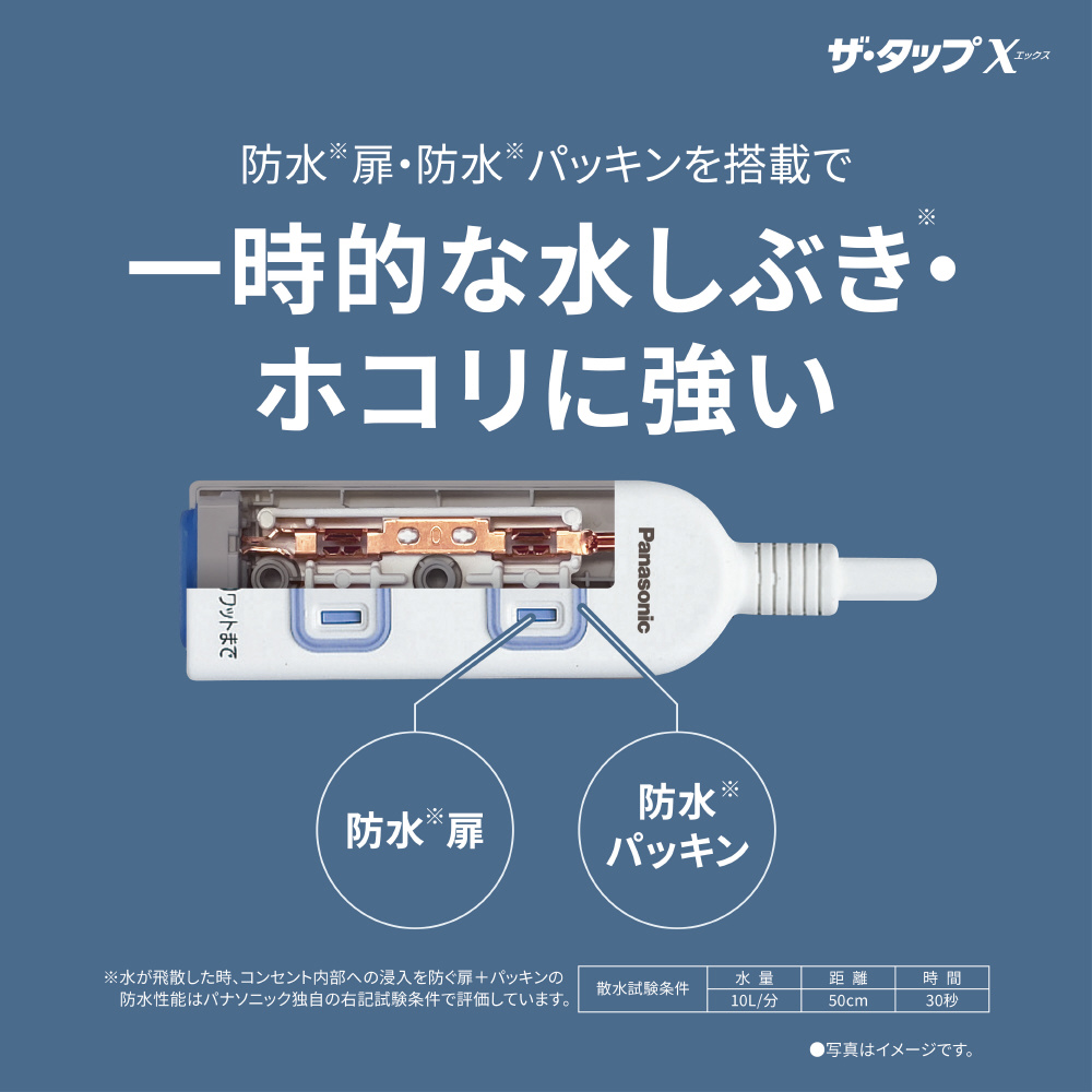 一時的な水しぶき・ホコリの侵入をガードする「防水扉」「一括防水スイッチ」付。