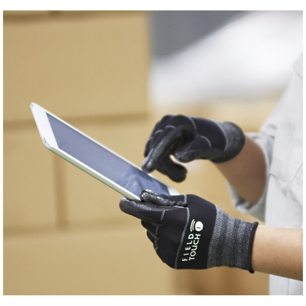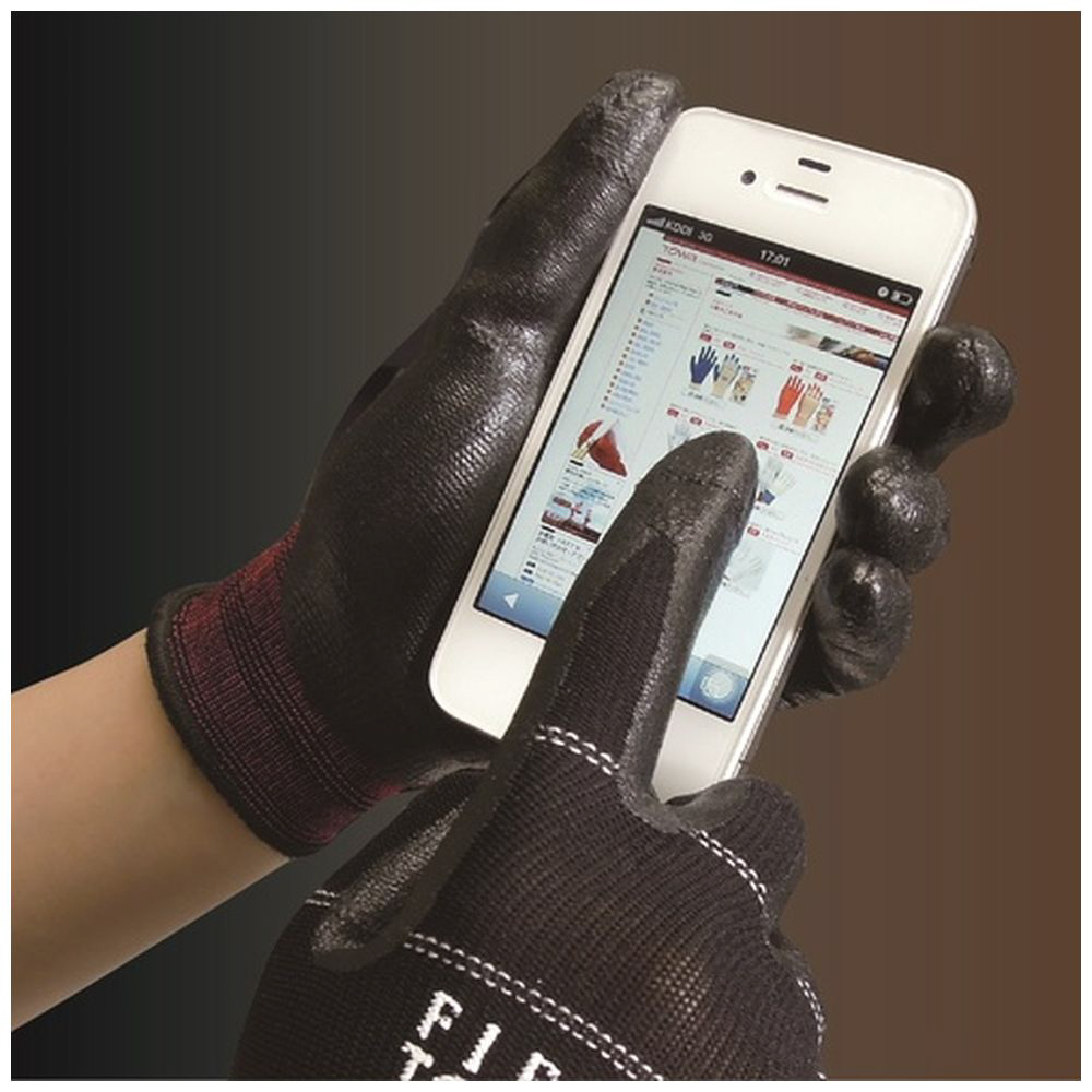タッチパネル対応の作業用手袋で、手袋をはめたままスマートフォンなどが操作可能です。