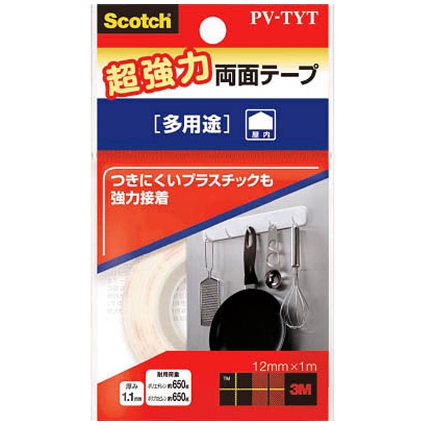スコッチ 超強力両面テープ 多用途 12mmX1m 白【1巻】
