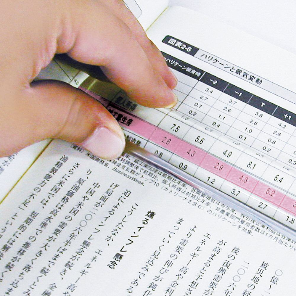 カラーのラインで行の読み取りが簡単に1行5行読みとりやすく文字のばらつきを防ぎ目にかかるストレスを軽減します