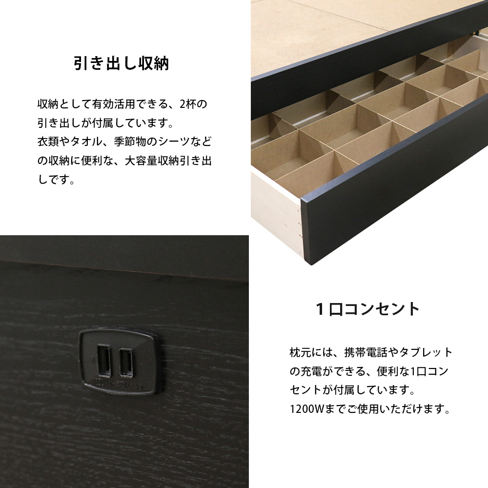 ヘッドボードタイプ 棚付き(コンセントあり)