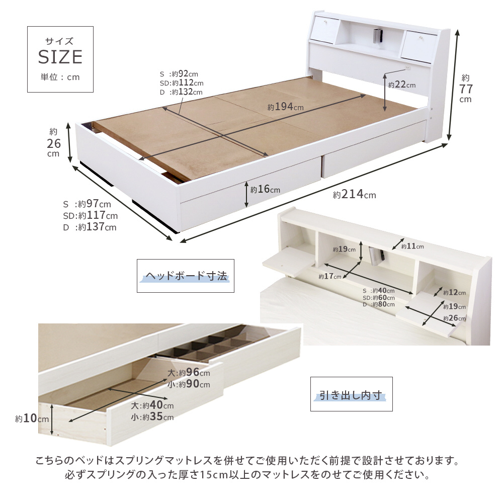 サイズ(幅×長さ×高さ)cm フレーム:約145×215×77cm