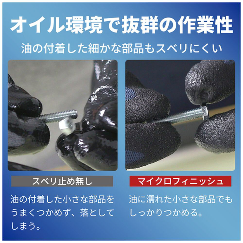 油をともなう作業でもグリップ性に優れています。
