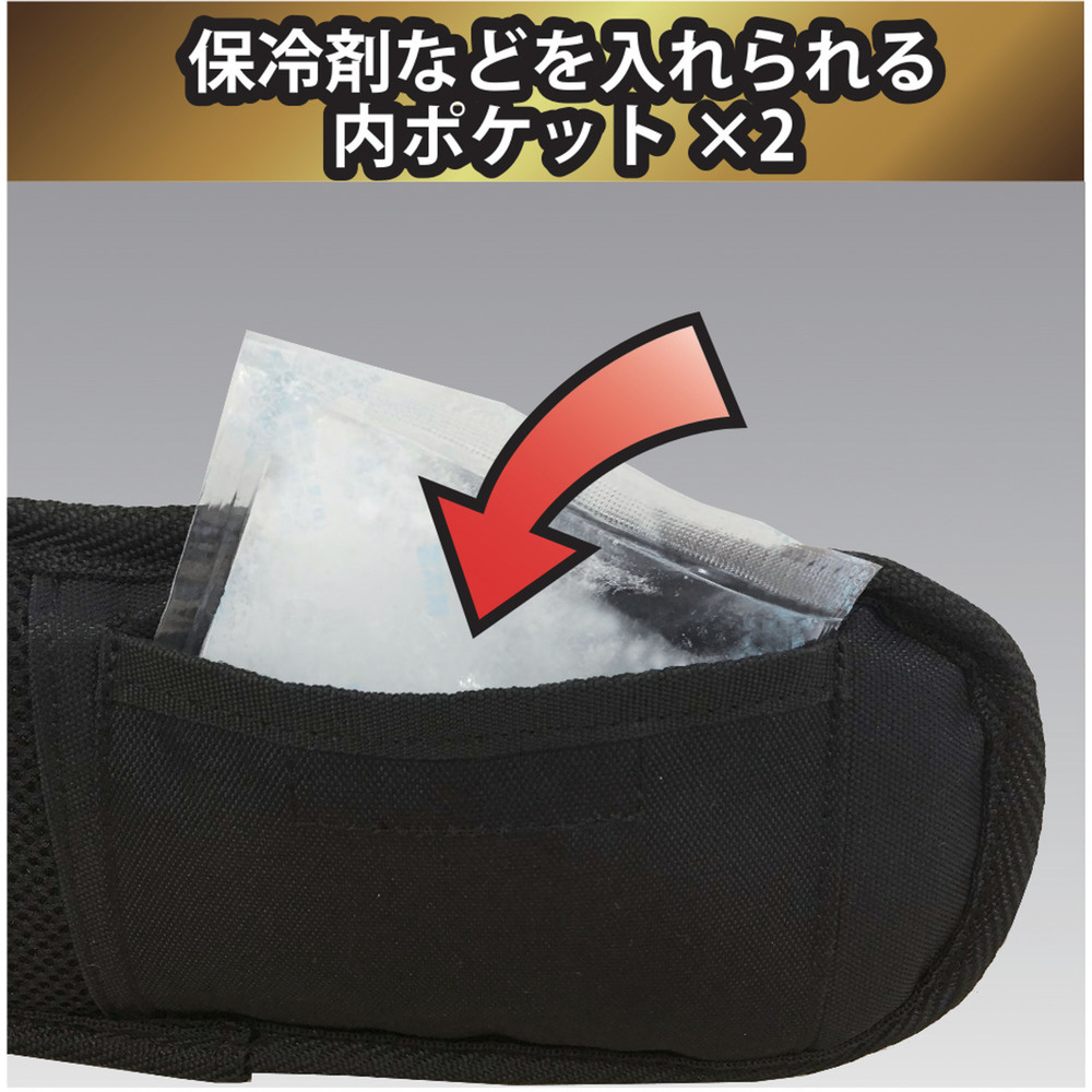 ■内側はムレにくいメッシュ素材+保冷剤などを入れられる内ポケットで暑い夏場でも快適です。