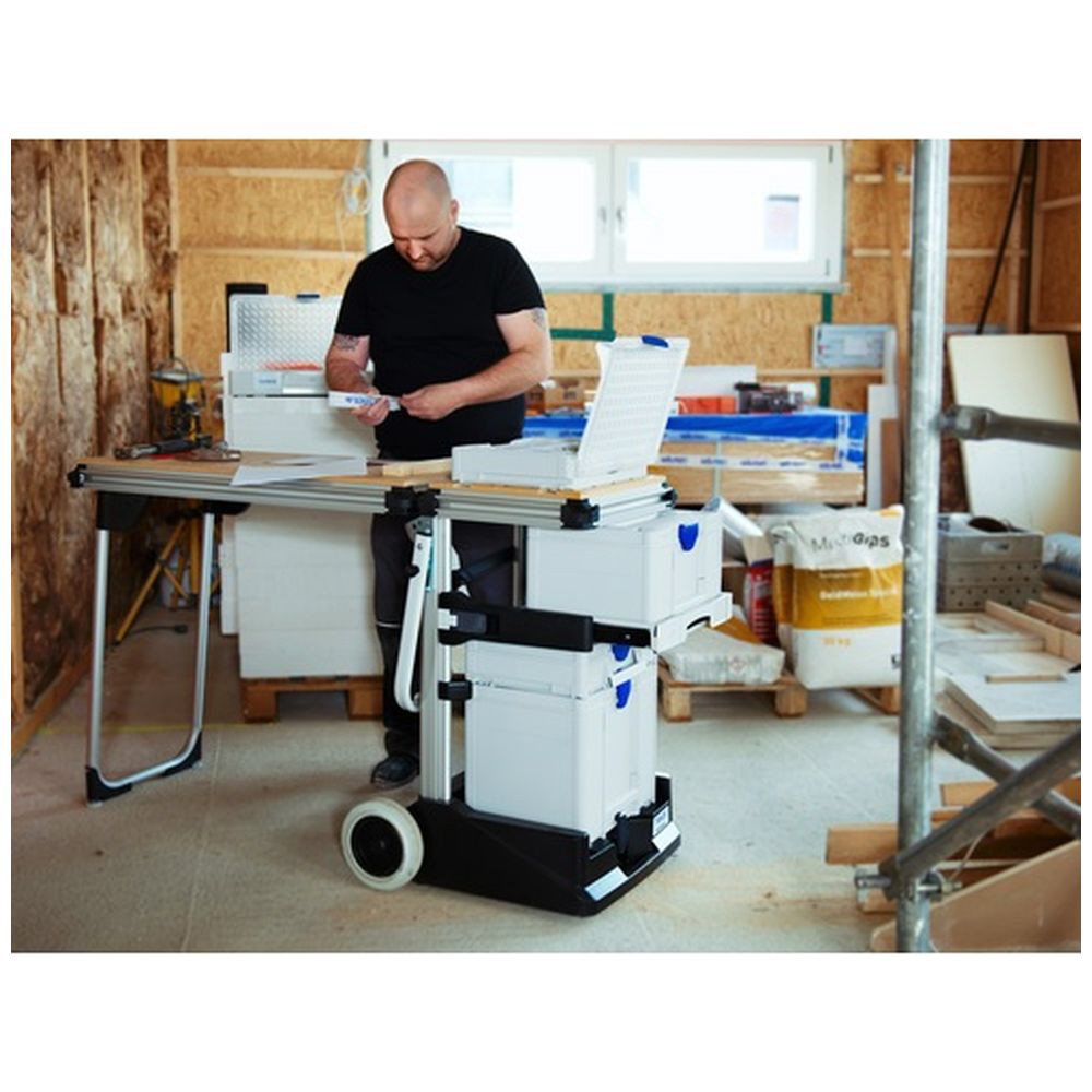 システムボックスsystainer[[R上]]のボックス、ツールケース、バスケットを搭載可能な移動式作業台です。