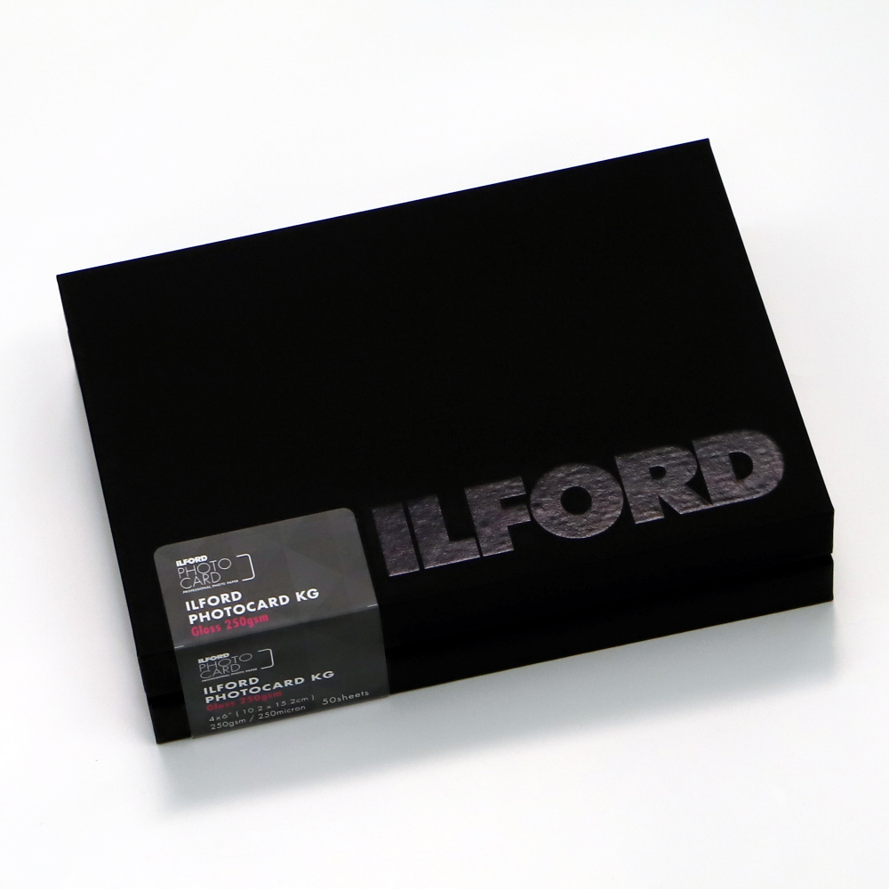 「ILFORD PHOTOCARD Gloss 250g」は、光沢プロフェッショナルRCフォトペーパーに角丸加工を施したKGサイズのインクジェットペーパーが黒いフォトカードボックスに入った製品です。