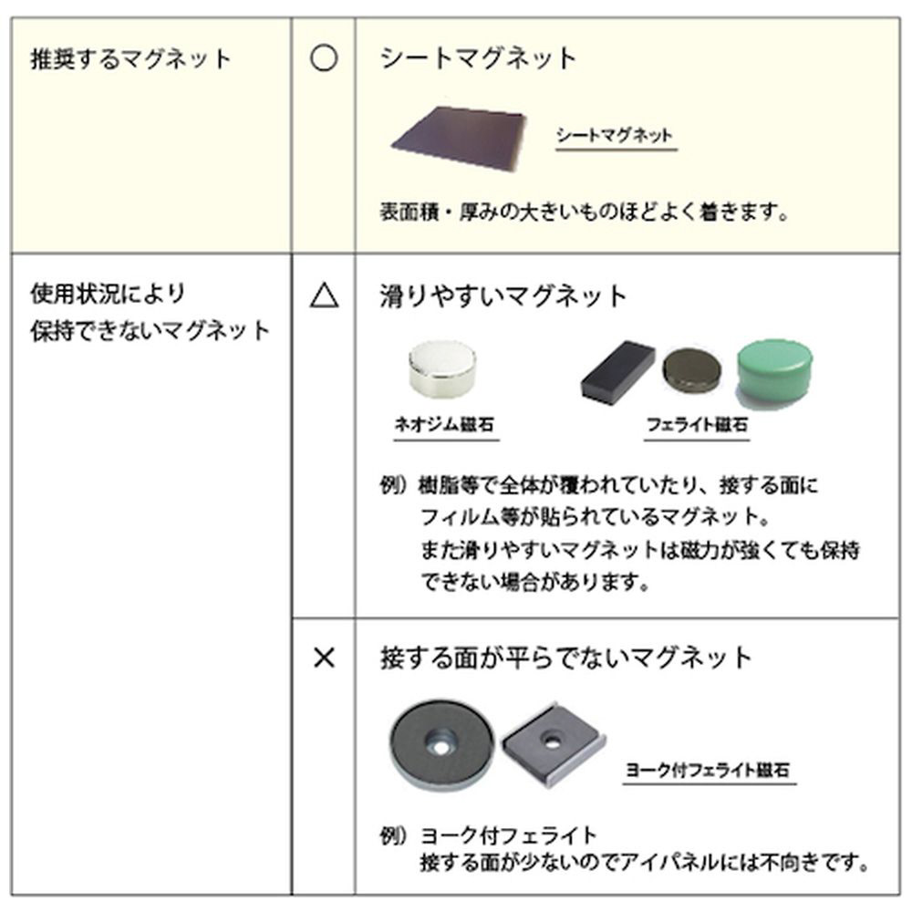 注意 ●鉄粉を含んだアイアンシートで、マグネットではありません。●粘着を好まない場合はピンなどをご使用ください。●粘着力が強い為、剥がした際貼り付け面を傷めたり糊残りする場合がございます。