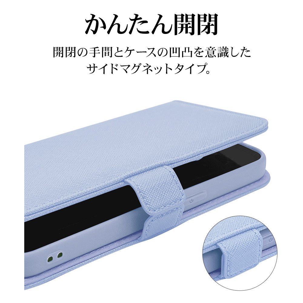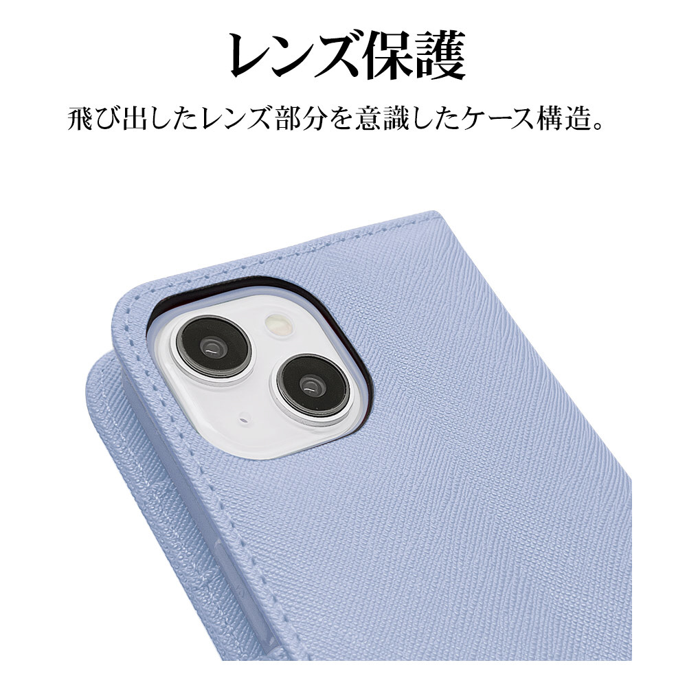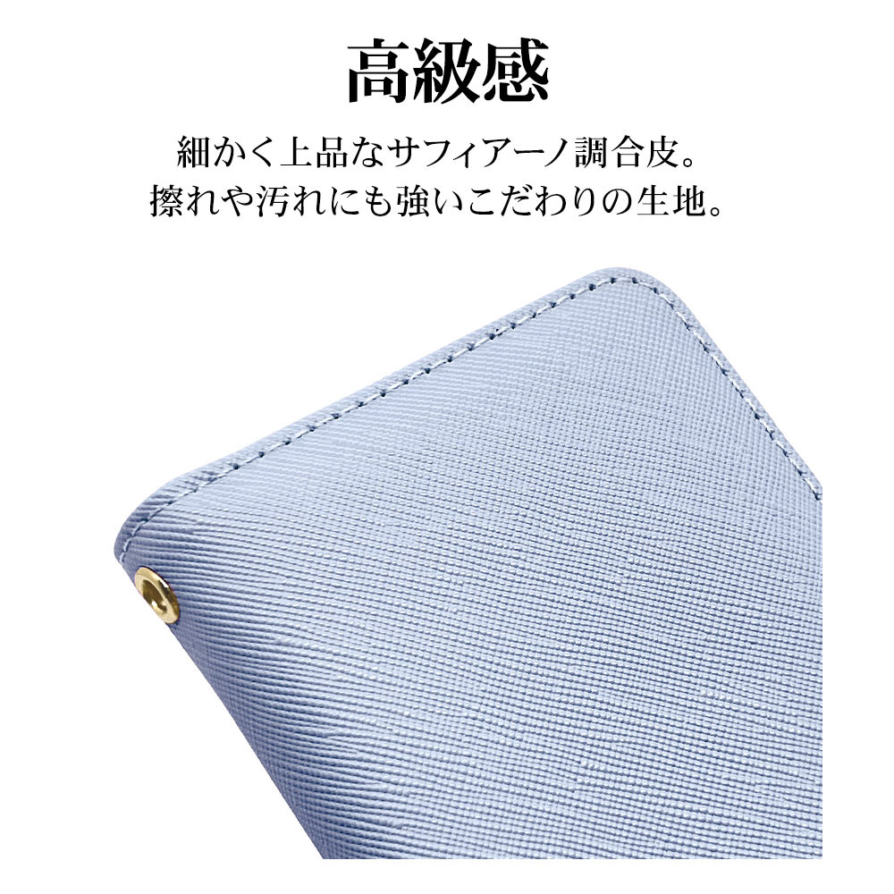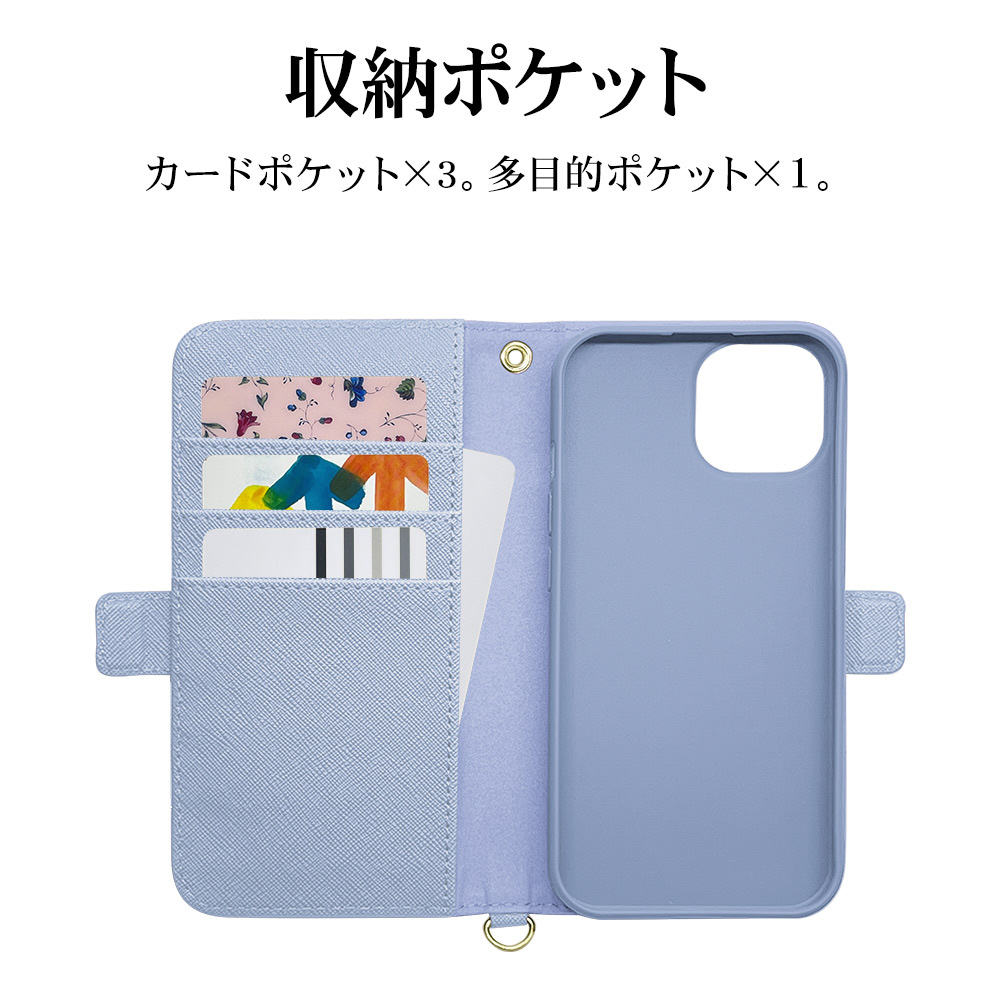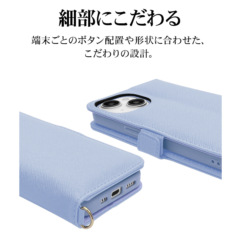 iPhone 15 手帳型ケース+ハンドストラップ カード3枚 ライトブルー